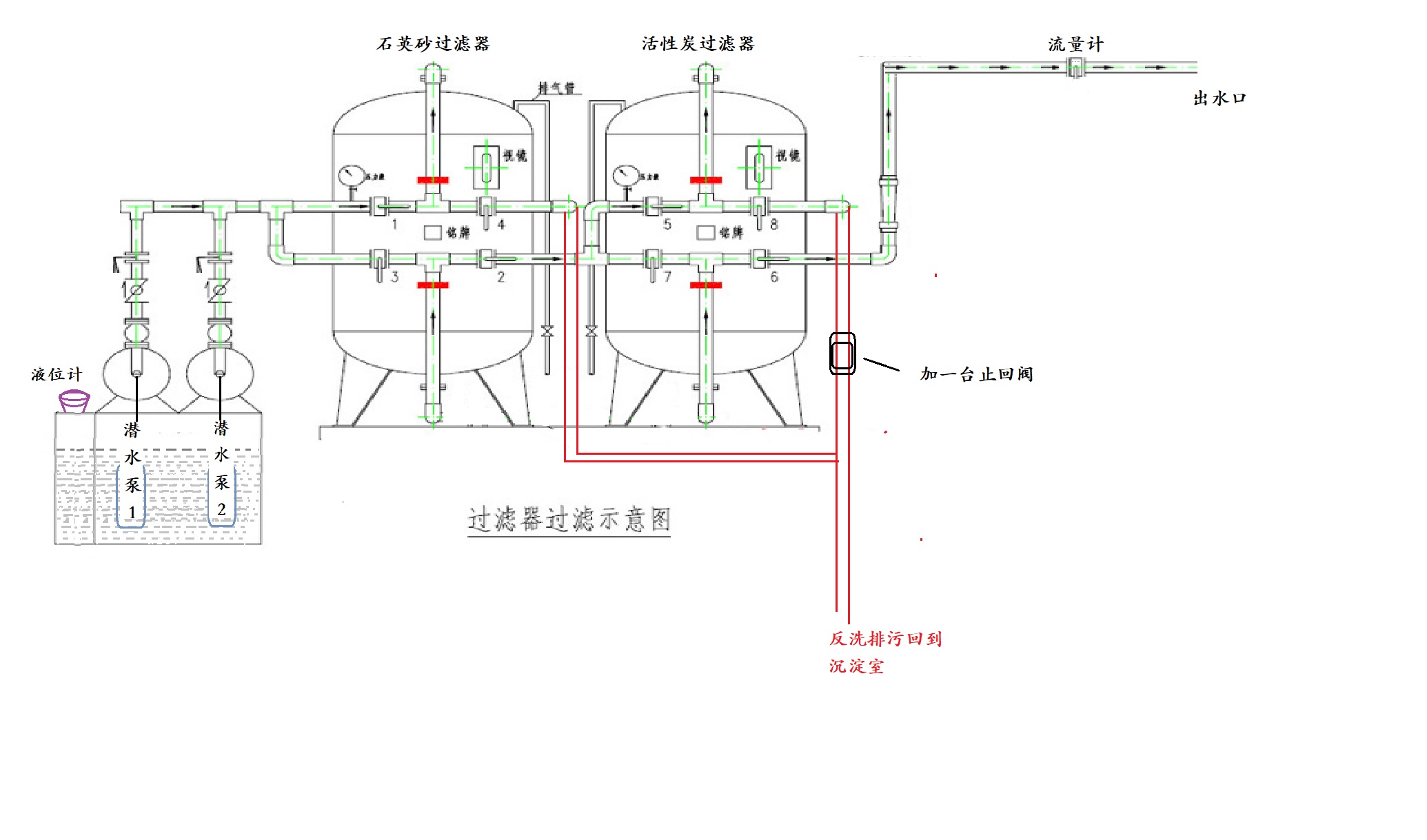 5, 提升泵,過濾器,流量計(jì)的整體作業(yè)安裝。